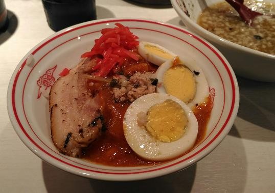 デフォで味玉もつくので玉子は2つ。