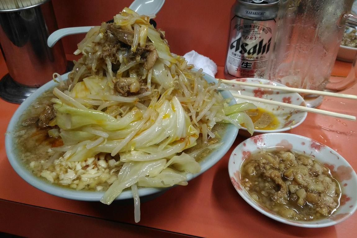 前回ちょっとヤサイが物足りなかったかなと思ったので今回は「ニンニクアブラヤサイ」で着丼です。