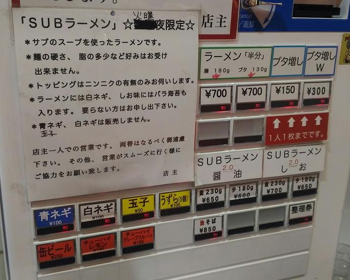 ワンオペ営業のこの日は未食のsubラーメン狙いです。