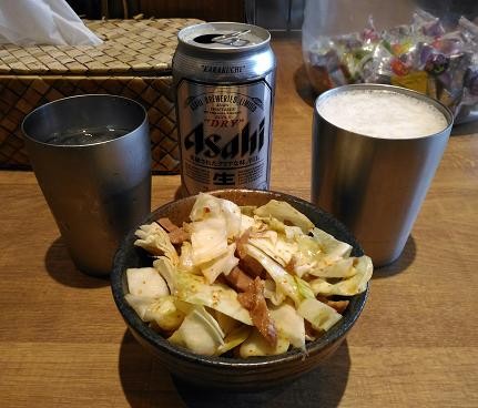 キャベッチャは結構量があり、缶ビール1本では余るくらい。
