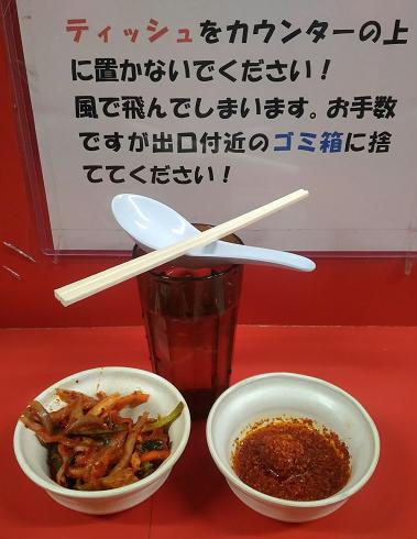 ブタとヤサイを食べたら、辛味とタマキムで麺とスープを堪能。