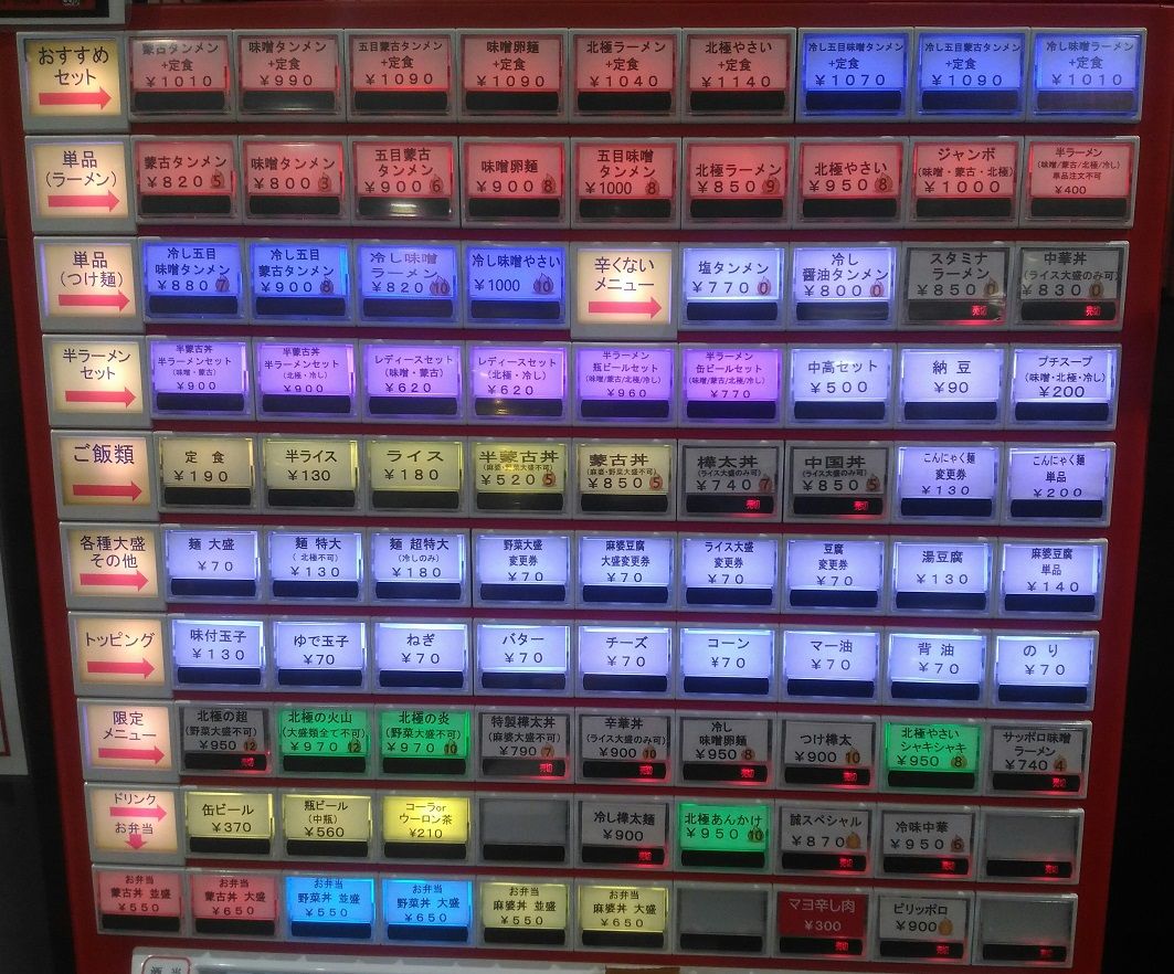 券売機ではご飯ものが充実していますが、残念ながら売り切れランプ。