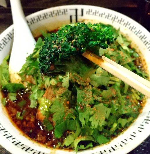 ブロッコリー、パクチー、にんにく、しょうがと身体に良さそうなものてんこ盛りですがやっぱりスパイスの効いたスープのおかげで美味い!