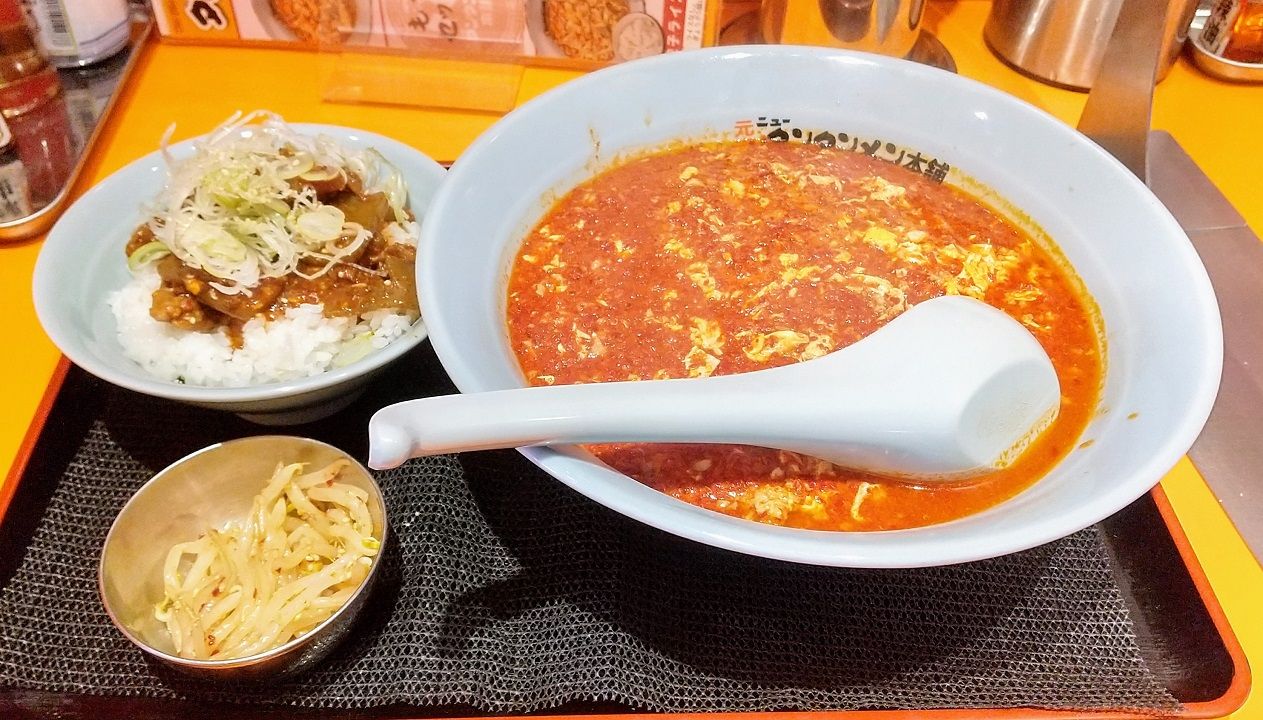 タンタンメン+牛すじ丼+もやしナムルのセットです