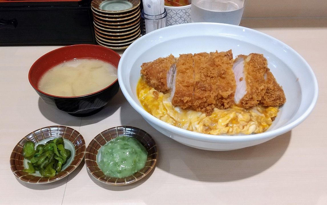 写真の通りとんかつは綴じた玉子の上にそのまま載っています