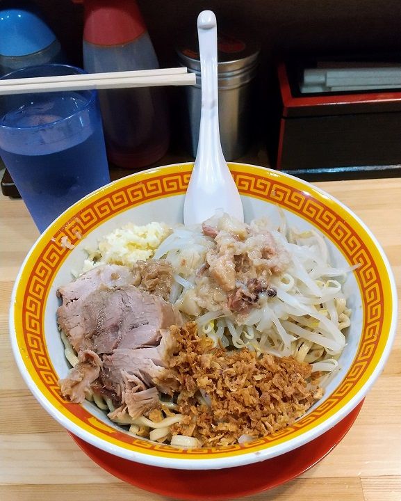 二郎系としては細めカタメの麺の汁なしはジャンク感溢れる美味さで食べやすい