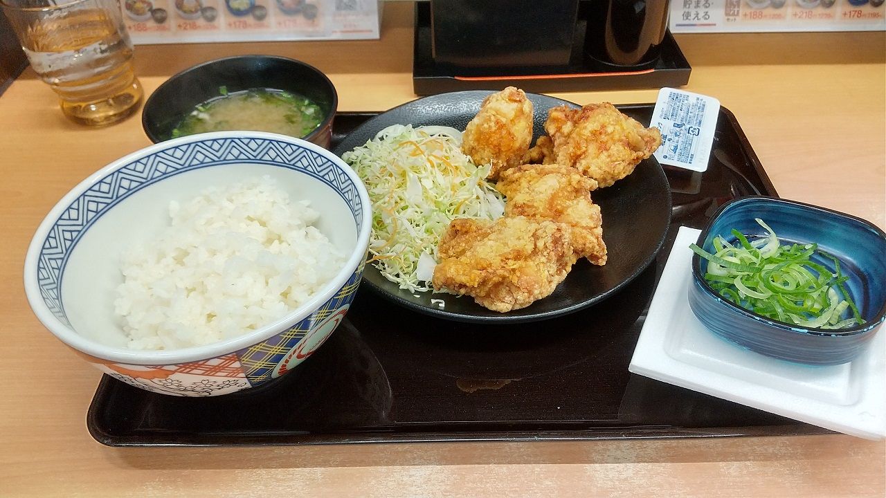 唐揚げ定食 688円、納豆118円、計806円
