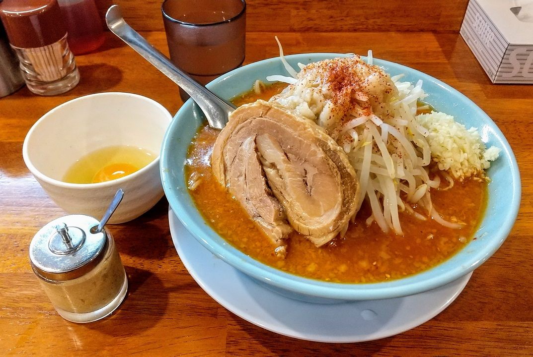辛味噌ラーメンは左下のショウガの小瓶と合わせて提供されました