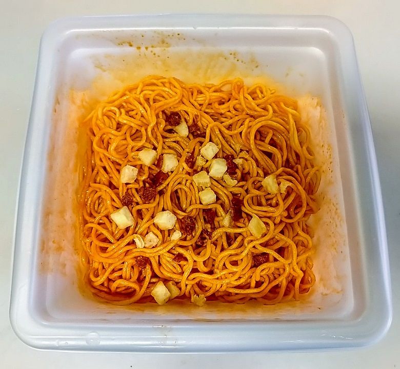 ポテチのザクザクした感じとパウダーから来るしょっぱさ辛さがカップ麺だとマイルドになってますがバランスよく美味い!
